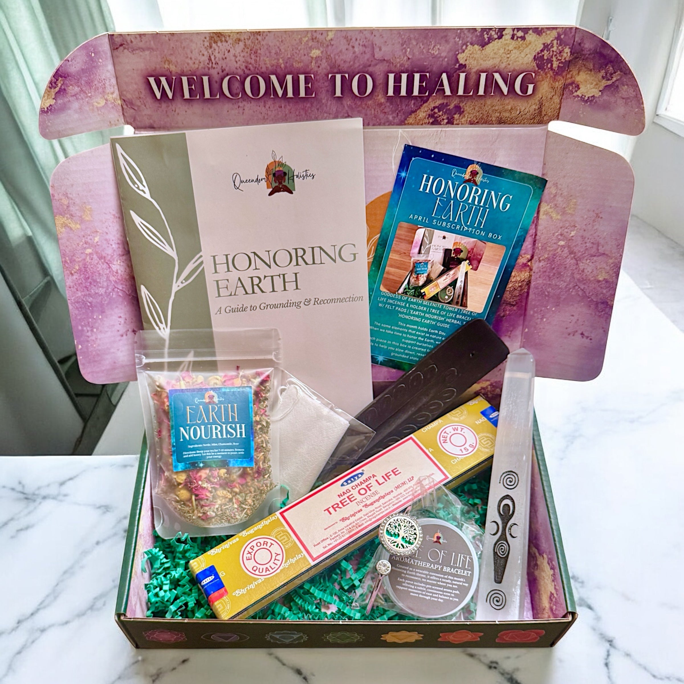 The Honoring Earth box is designed to help you slow down, reset, and reconnect through simple, grounded practices you can return to anytime. Each piece is thoughtfully selected from the Earth, offering practical ways to bring more balance, presence, and ease into your daily life.