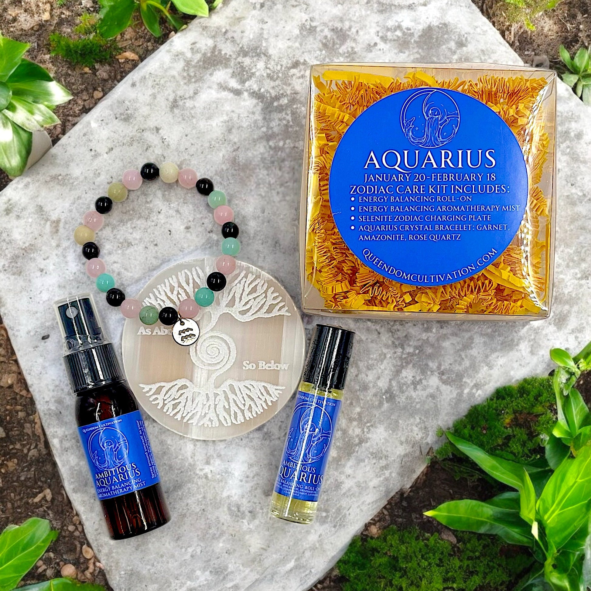 - Aquarius Crystal Bracelet: Garnet, Amazonite, Rose Quartz