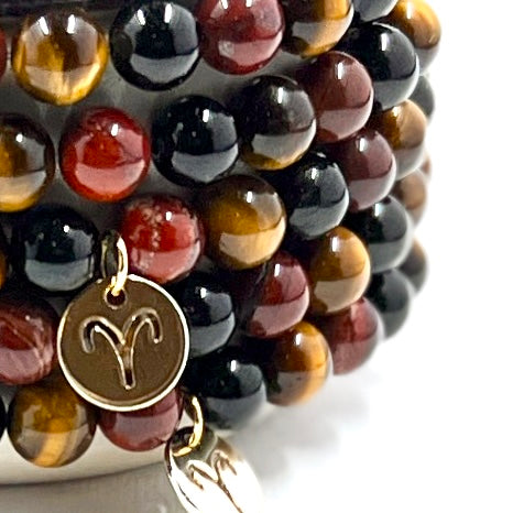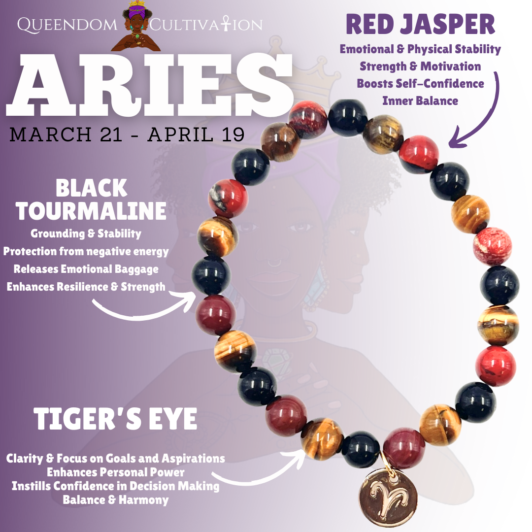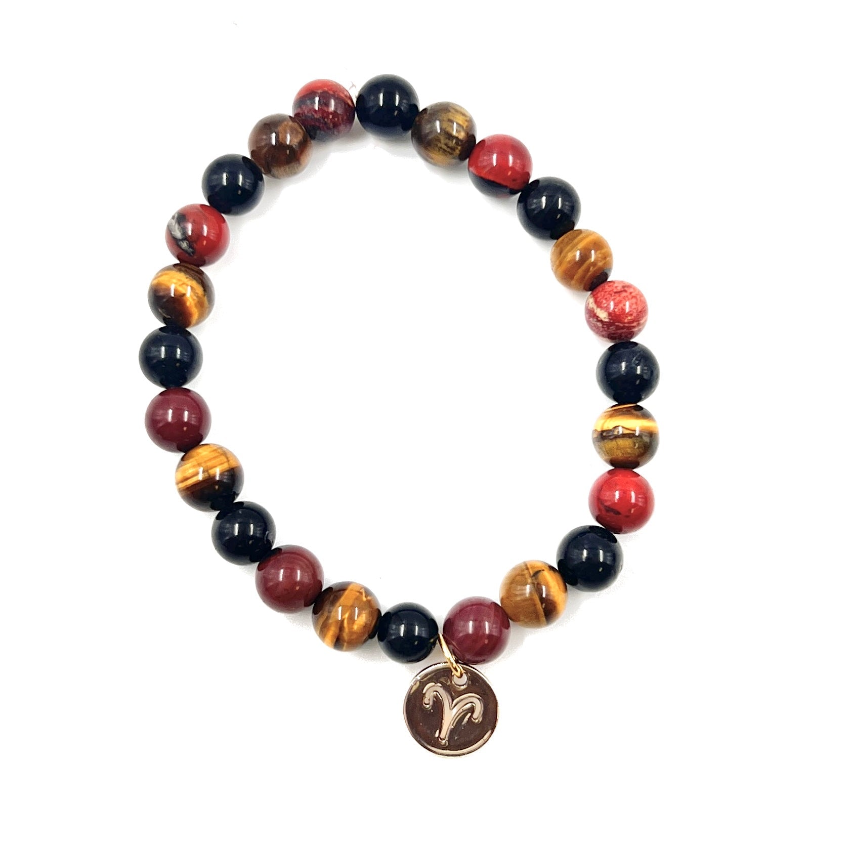 Crafted with the finest natural stones - red jasper, black tourmaline, and tiger's eye. Each of these stones has a unique set of properties that work together to help Aries lead a more balanced life.