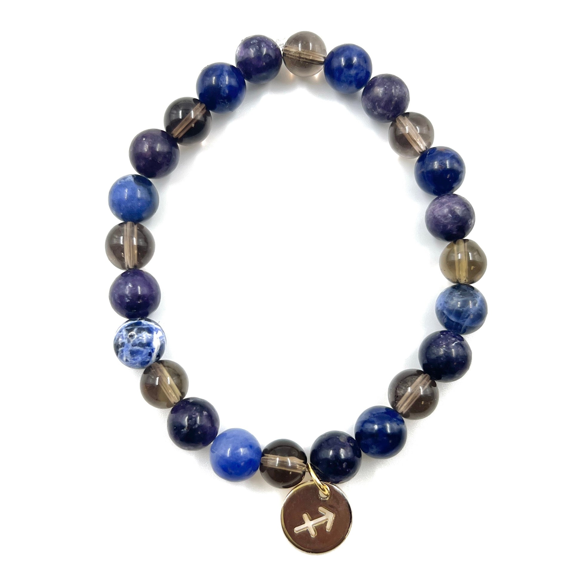 A powerful combination of Lepidolite, Smokey Quartz, and Sodalite. Each of these stones has a unique set of properties that work together to help Sagittarius lead a more balanced life, mentally, physically, and emotionally.
